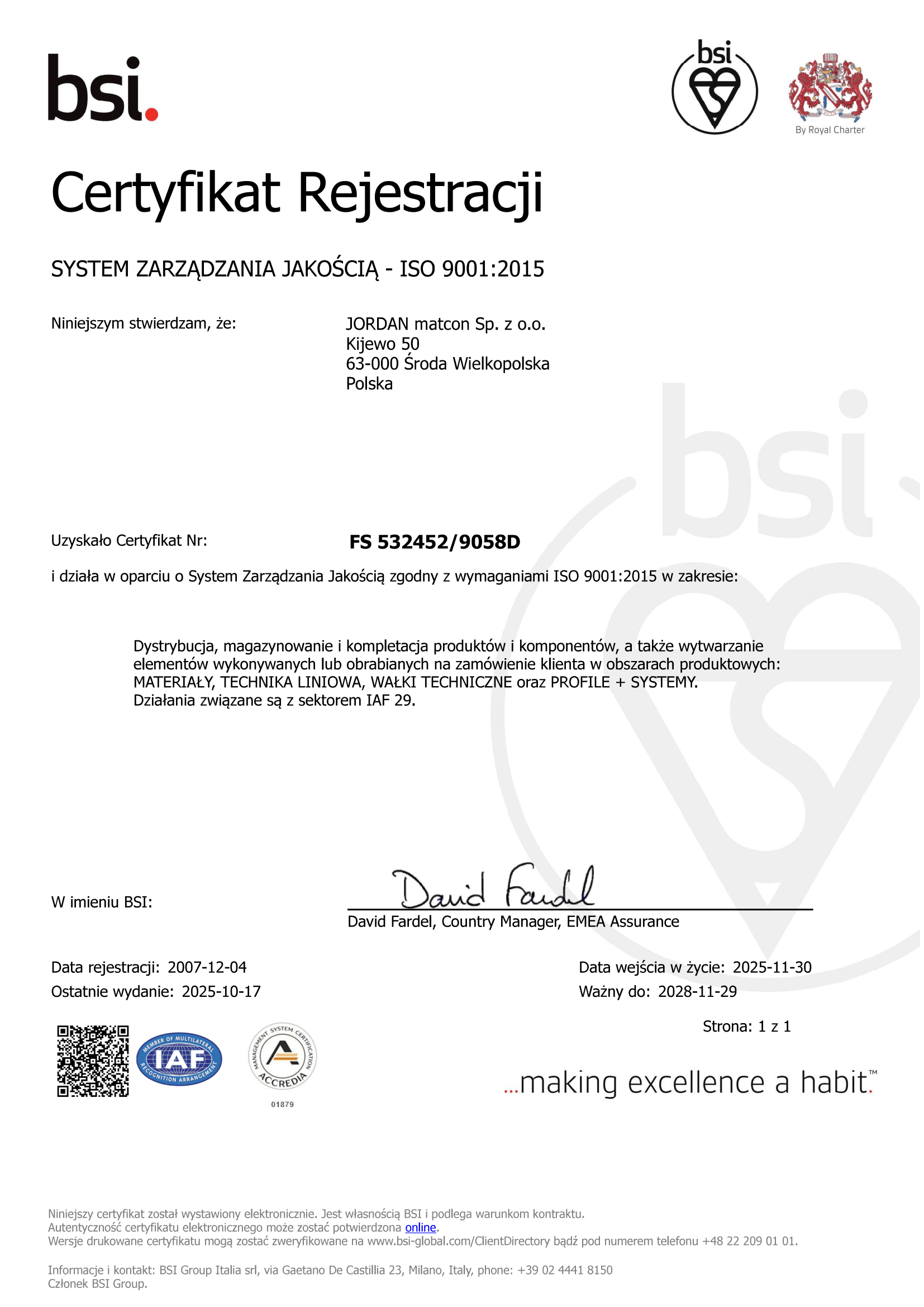 Podstawą polityki jakości, w firmie Jordan matcon Sp. z o.o. jest zrozumienie oczekiwań i potrzeb naszych Klientów.